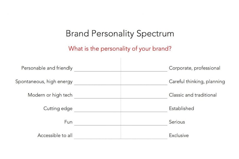 Another valuable exercise that will help you better understand your brand’s identity is creating a personality spectrum. It will allow you to outline your brand's central parameters and understand how it should communicate with its users. This information will then help you define the most suitable color palette for your company’s identity.