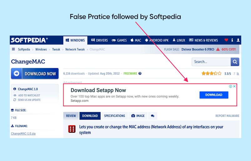 A famous case of a website using disguised ads is Softpedia—a very popular platform that allows users to download free software. Naturally, a substantial part of the services income revolves around ads.