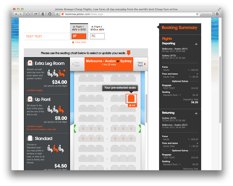 Jetstar’s booking process used at a certain point featured a classic example of misdirection. The Australian low-cost airline’s site works as you would expect it to. You select a flight, and you move forward with selecting luggage and other options. The curious thing is that Jetstar will preselect seats for you, which is a paid service.