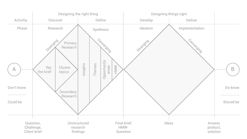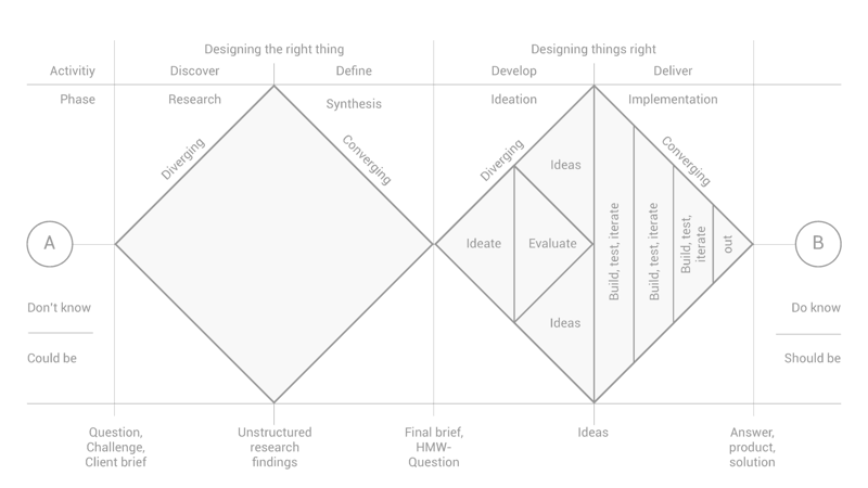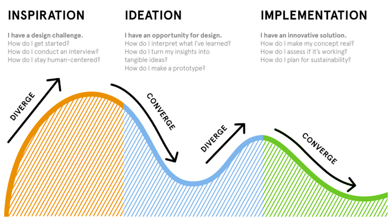 In this stage, your team gets together to generate ideas without judging one another. Focus on quantity. This will prevent you from settling on obvious solutions and cause you to venture into the unknown, which harbors innovation.