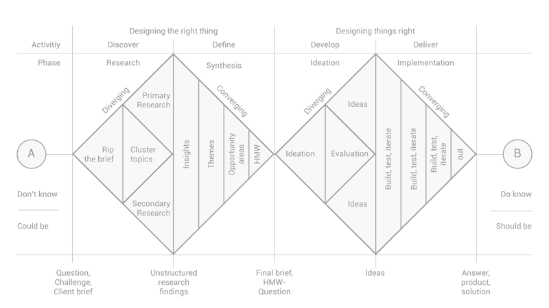 Having seen the ways we can use design thinking to create innovative business models, let’s now determine how we can use it to come up with new products and services. It all comes down to the following five steps: