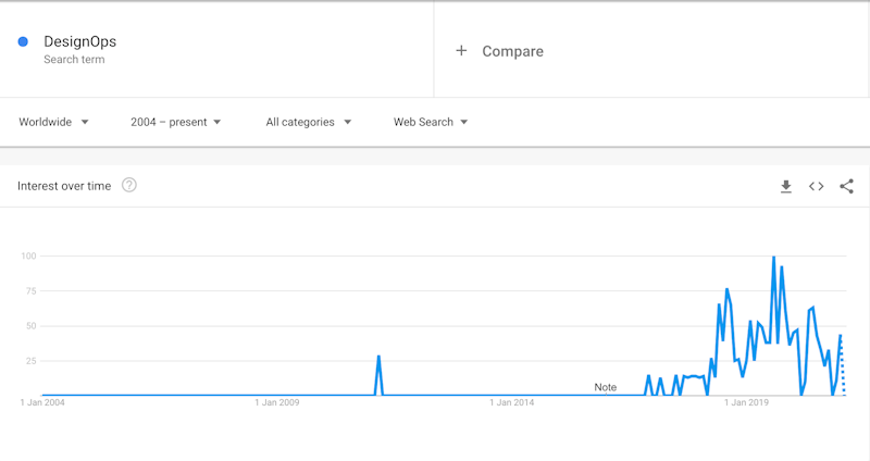 In the world of tech, trends are everything. Not too long ago, we had a blockchain everything. Blockchain payment systems, blockchain ride-sharing, blockchain you-name-it. Quite recently we noticed a similar though not as ubiquitous increase in interest with DesignOps. The Google Trends data seems to back our observation up.