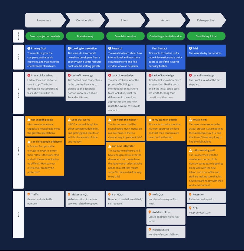 Empathy maps provide us with a broad spectrum of benefits. They convey complex information about the persona in a quick and digestible way, which is also beneficial during journey mapping. Plus, they aren’t too time-consuming and demand little resources.