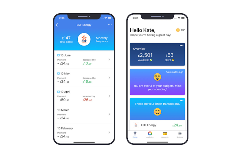 On the other hand, there’s Emma — a money management tool. We can immediately sense how it’s much more welcoming, less crammed, which, as a result, causes less unwanted friction.