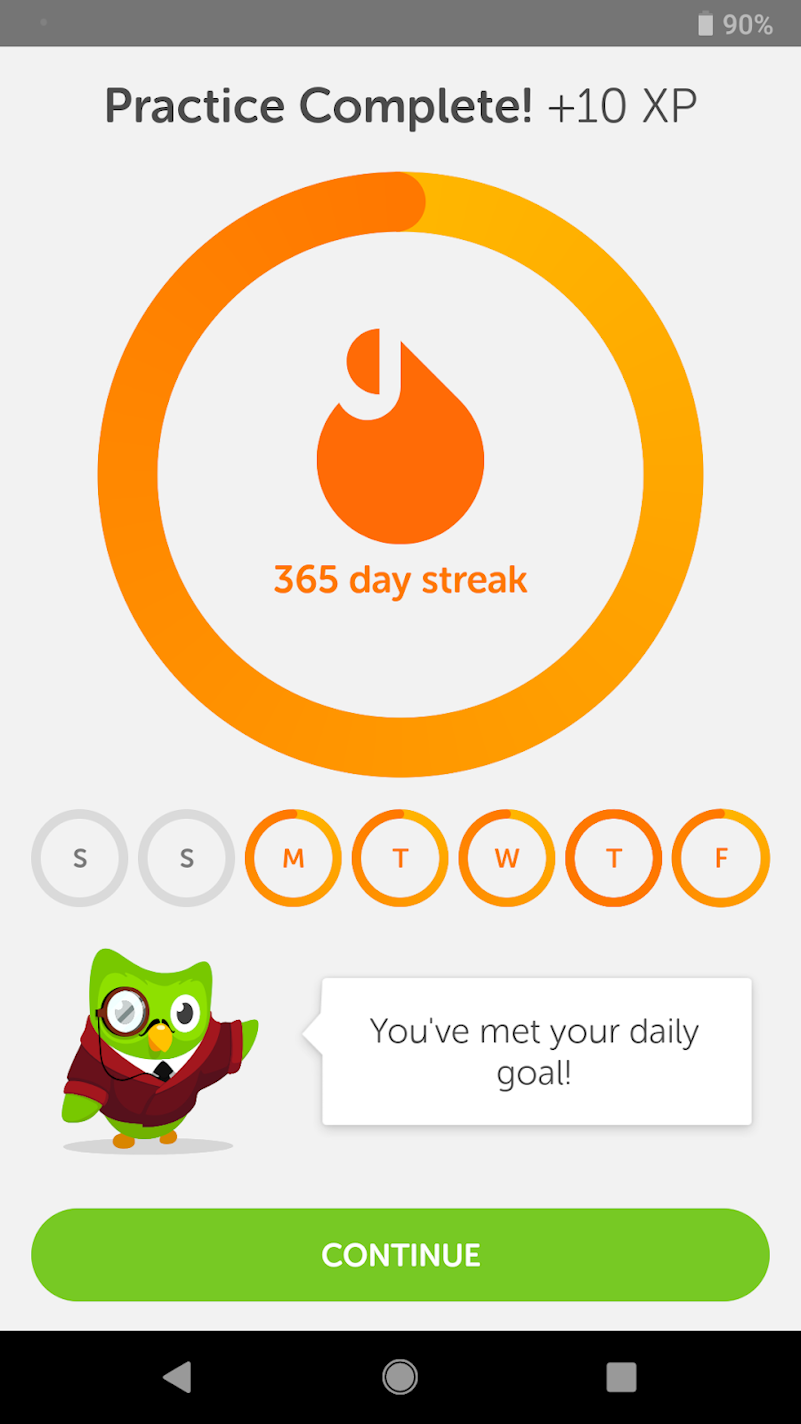 Our first example is Duolingo. Gamification is a fairly popular engagement booster in the E-learning industry. When it comes to education, consistency is key. The app provides its users with experience points for completing challenges and daily streaks.
