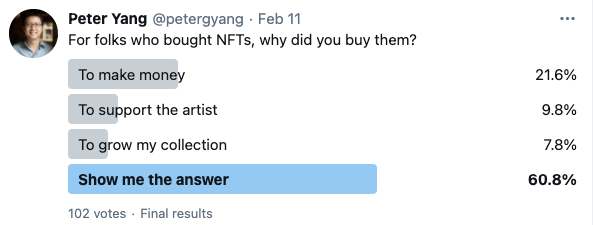 On the other hand, if you’re in the game to grow your art collection or support artists you care about—kudos to that. Most of the above questions might not relate to you but are still worthy of exploring. You’re about to invest a part of your disposable income into digital art, so assessing the soundness of your decision is always a great idea.