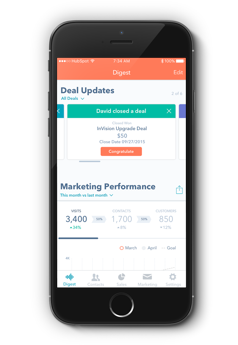 An example of a mobile version of a primarily web SaaS platform – HubSpot. Source.