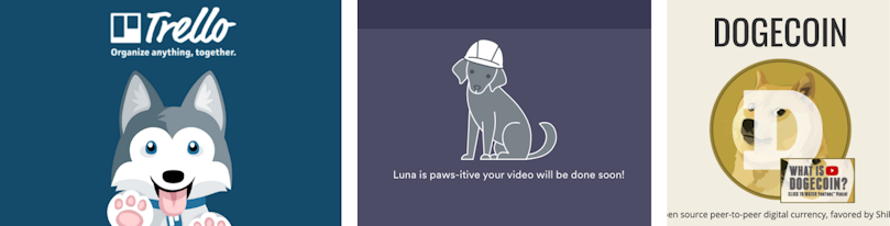 Are you a cat person? Too bad. Cats are endangered species now. In products’ branding at least. While this is not a comment on Trello’s UX design, we couldn’t help but notice that so many brands develop dog-themed designs. To name a few: Taco from Trello, Luna from Loom, Dogecoins.