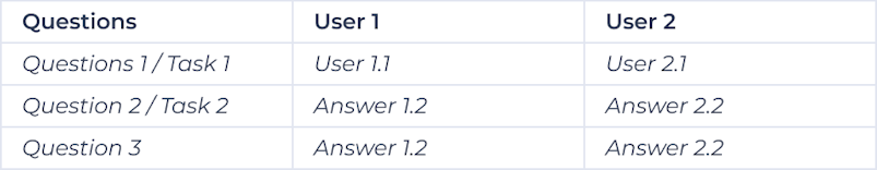 Using spreadsheets or tools like Miro can help you structure your findings in a meaningful manner. Consider structuring your findings as follows: