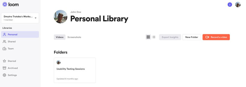 It's very common to record the usability testing sessions to make sure you don't miss any critical feedback. Many conferencing tools like Zoom and Skype already have that feature. However, if you're using a tool that doesn't support native recordings, there are third-party screen-recording apps. Loom is the one we use. This app’s free version used to be a saver for a while, as it allowed recording your screen for as long as you like. Currently, the free version only allows for up to 5 minutes of recording time. The premium version costs 10$ for monthly billing or 8$ a month for yearly billing (96$ in total).