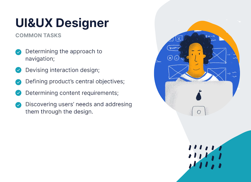The breadth of a UX specialist’s duties is often defined by the product, the budget, and the company they work in. This means that you can be heavily involved in user research if your company doesn’t have an actual UX researcher. Sometimes, designers write UX copy, if the company can’t afford a UX writer.