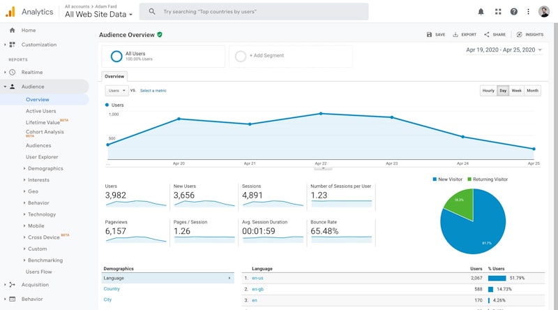 An example of a dashboard in Google Analytics.