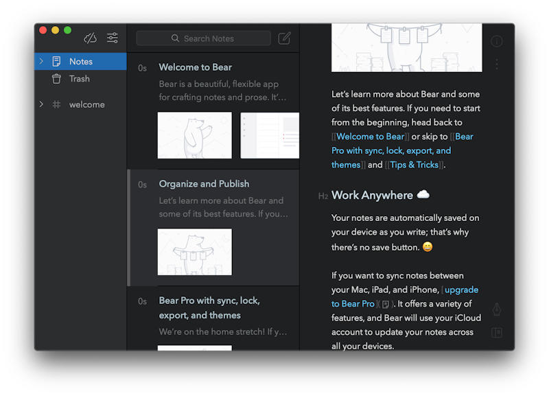 Another great example is Bear Notes. When a user launches the app for the first time, they’ll notice that Bear Notes already has multiple entries that contain onboarding tips.