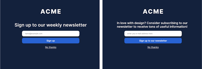 It’s tempting to think that microcopy is trivial. What do these few lines of copy matter anyway? As a matter of fact, they do. Yvonne Gando, a senior UX writer at Google, presented a case study, that shows that the difference in clicks between the least performing and most performing invite message Google chose for their app Duo is 30.1%.