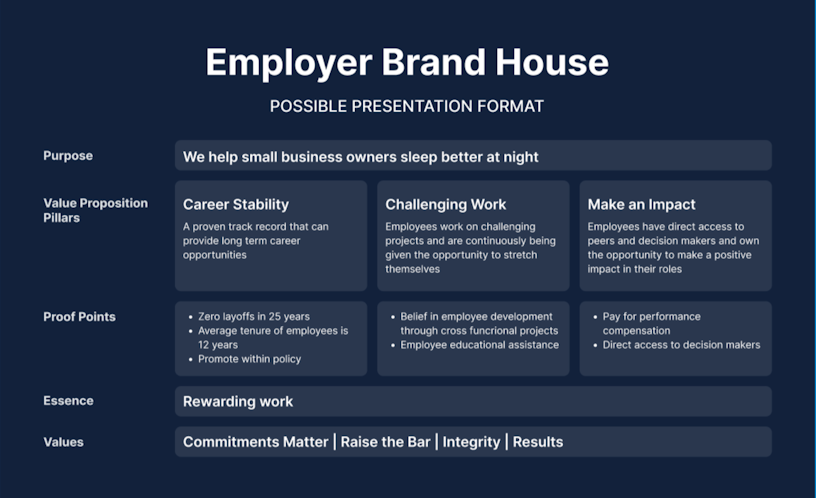 Naturally, before you can purposefully introduce values to your product, you’d have to define them first. In our experience, the best way to document values is through the brand house exercise. You can see an example of this deliverable below.