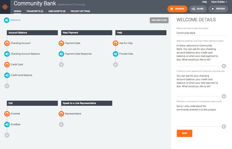 When prototyping for VUIs, designers need to put their scriptwriter’s hat on and think about how they should structure a person’s interaction with the interface so that it satisfies the requirements mentioned above.