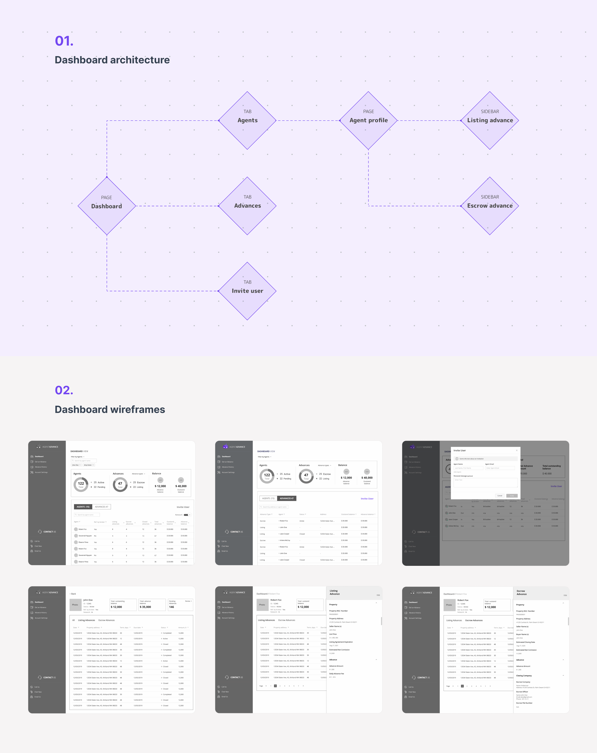 Having interviewed users and the stakeholders on the client’s side, we’ve shortlisted requirements and suggested multiple concepts for the product dashboard. The dashboard is meant for agents and brokers alike, though the latter user group had more permissions.