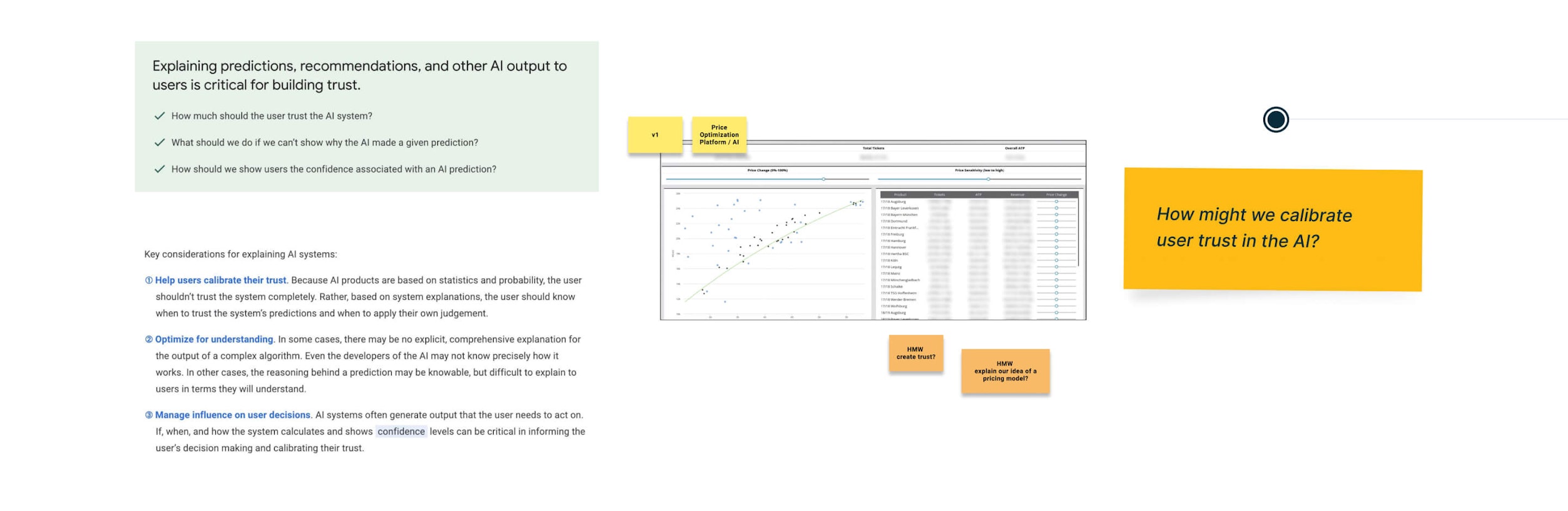 Building trust. Pricing suggestions generated by AI are very likely to raise eyebrows among our users. Therefore, it was our priority to demonstrate how AI works.