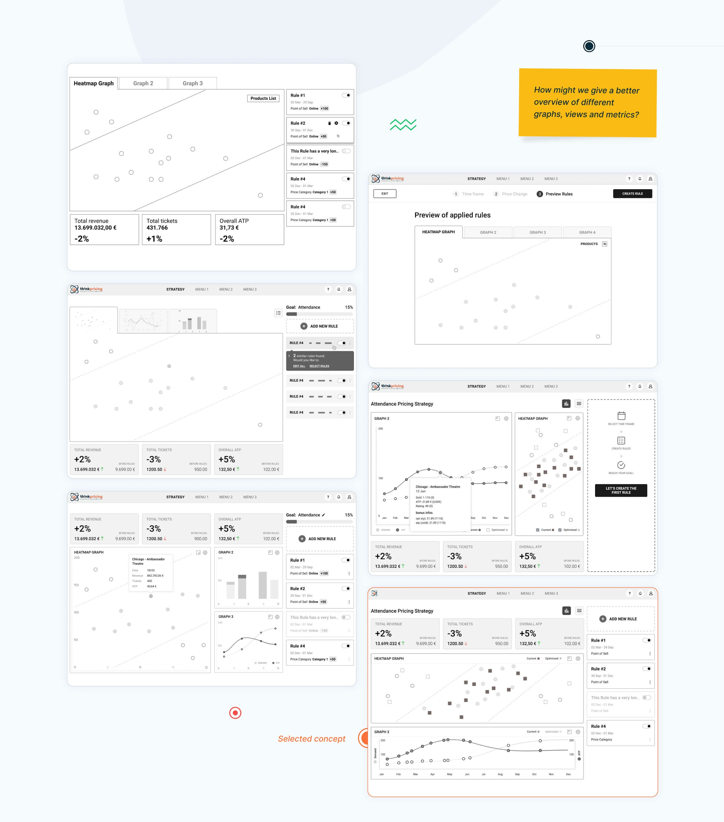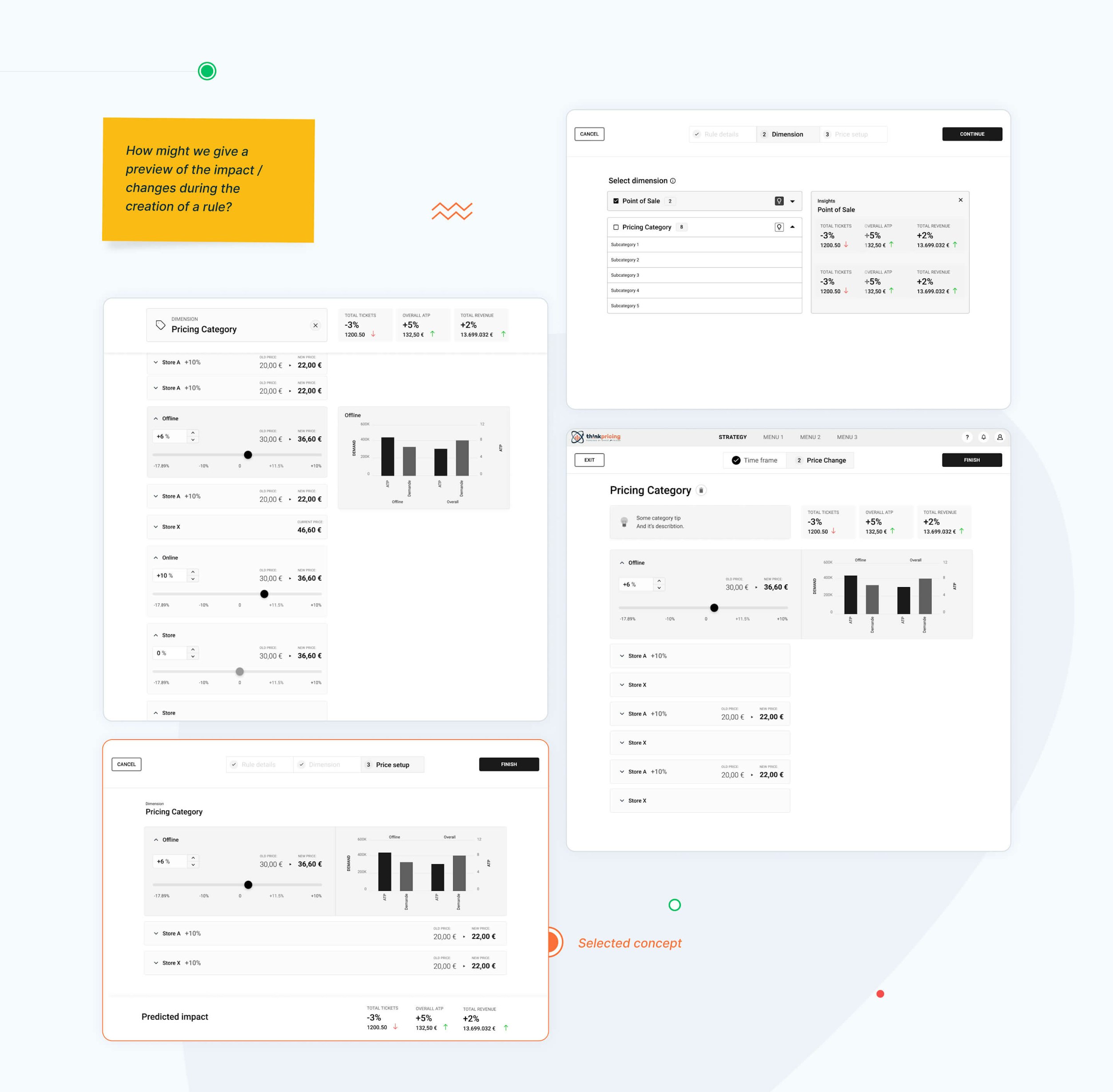 Although the Th!nkPricing team had a rough idea of the look and the colors they were going for, we helped them finalize and polish their vision through adding accent colors, advising on best practices and creating a style guide.
