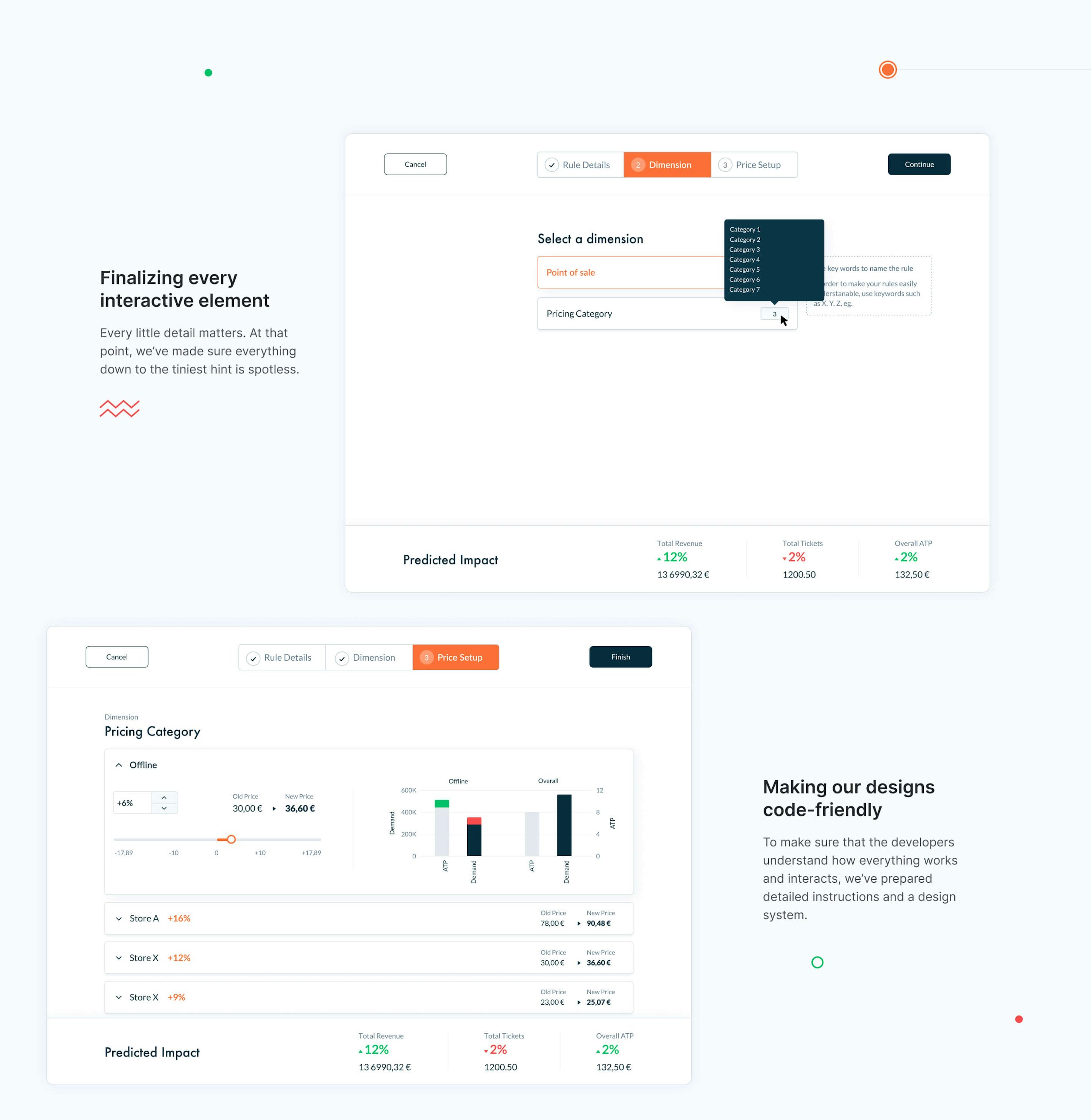 Having established the key product design aspects, we were ready to deliver the final coding-ready design.